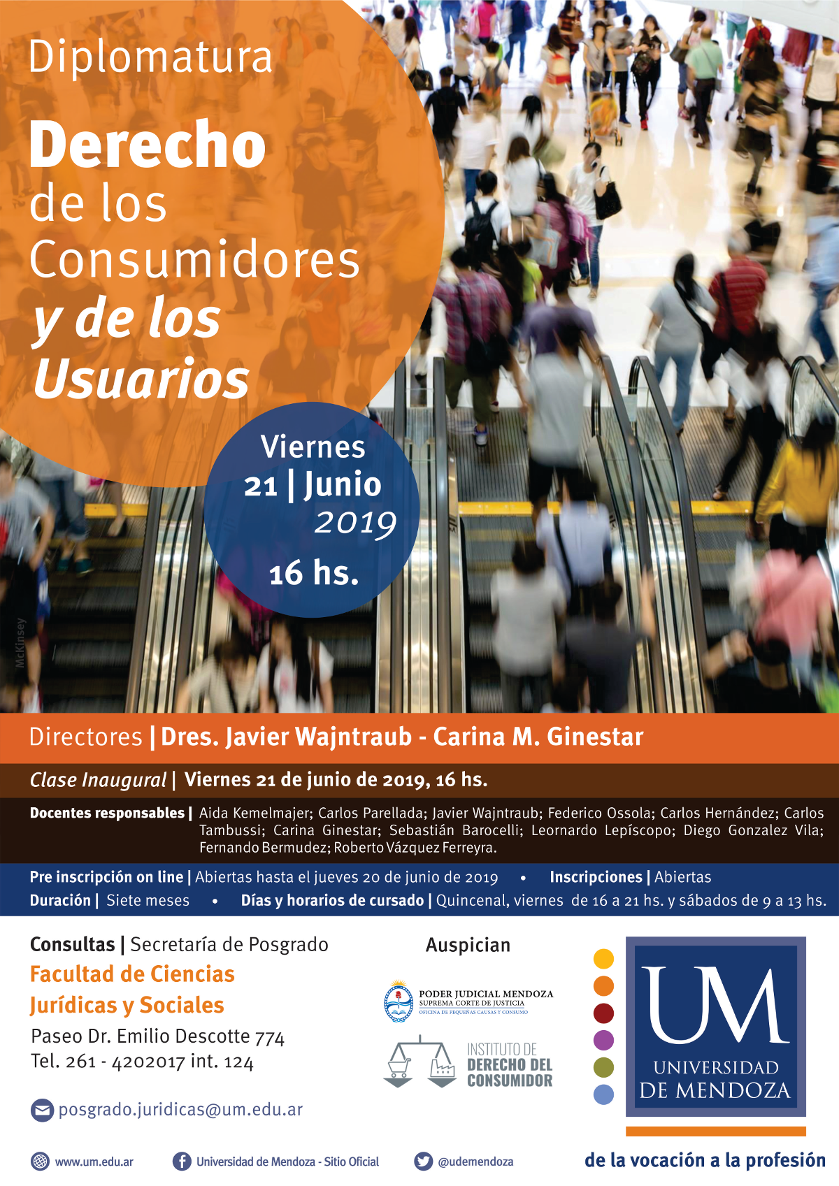 Diplomatura Derecho de los Consumidores y de los Usuarios 1 julio, 201920 mayo, 2019 por Martina Funes El Directorio informa la realización de esta «Diplomatura Derecho de los Consumidores y de los Usuarios», en la Universidad de Mendoza. Clase inaugural el 21 de Junio de 2019. Informes en posgrado.juridicas@um.edu.ar