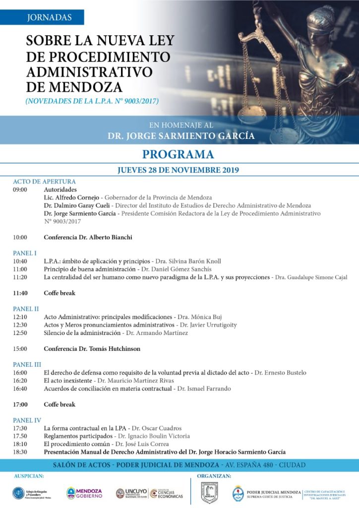 Es la clase de cierre de la Diplomatura en Derecho Digital y Estado de la Universidad Champagnat. Está prevista para el 30 de noviembre a las 10.30 en el auditorio de esa universidad.
