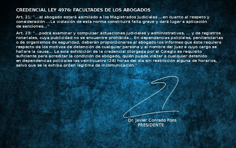 Cuando se les notifique el turno, durante el trámite, se les tomará una foto, completarán una ficha con sus datos actualizados y se les entregará una certificación donde consten su calidad de abogado/procurador del foro que les permitirá circular hasta que se recepcione la credencial, las que se confeccionan en la Ciudad Buenos Aires.