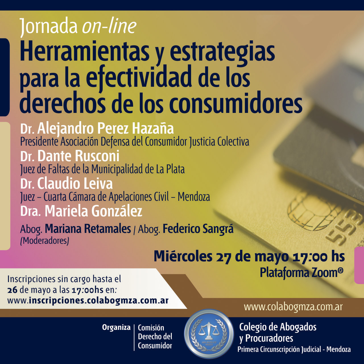 Se analizarán estrategias y herramientas efectivas para protección de los consumidores. Cuatro especialistas disertarán sobre la temática el miércoles 27 de mayo a las 17 por Zoom. Las inscripciones serán sin cargo hasta el día anterior en: inscripciones.colabogmza.com.ar