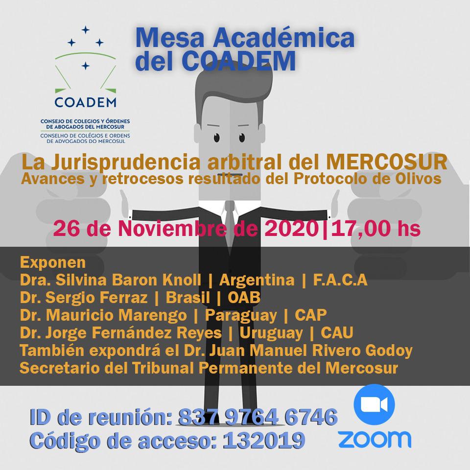 Se trata de un encuentro que organiza el Consejo de Colegios y Órdenes de Abogados del Mercosur (COADEM), previsto para el jueves 26 de noviembre a las 17 a través de Zoom.
