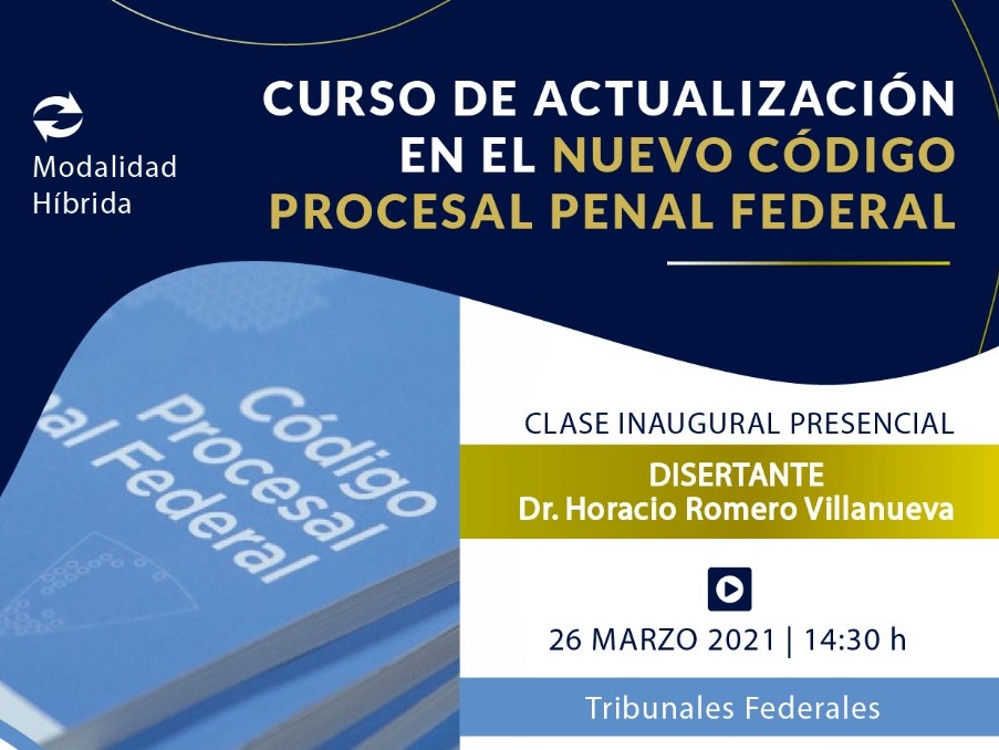Se trata de una capacitación de actualización sobre el Nuevo Código Procesal Penal Federal. Se cursará los jueves de 14.30 a 18.30 durante dos meses.