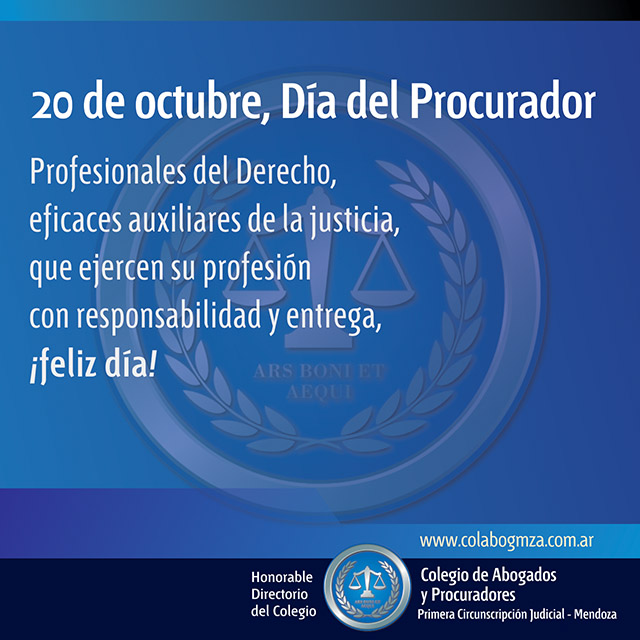 El 20 de octubre se recuerda la promulgación de la Ley Nacional N 10.996. Ese mismo día, en 1919, se reglamentó el ejercicio de la procuración, con rango y jerarquía, de carácter universitario en Argentina.