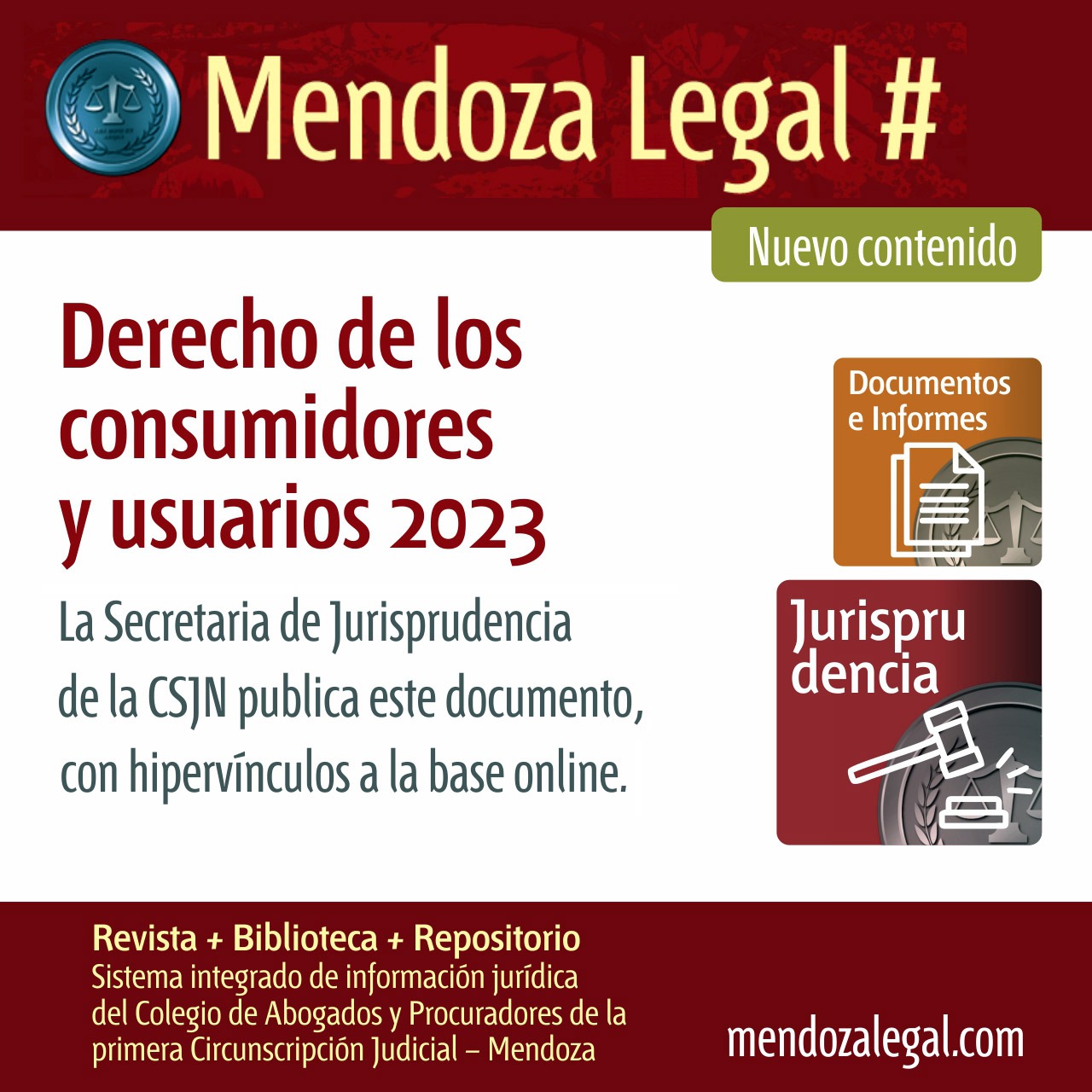 Mendoza Legal es el sistema integrado de información jurídica del Colegio de Abogados y Procuradores de la Primera Circunscripción Judicial de Mendoza. Una de sus últimas publicaciones ofrece un documento de la Secretaria de Jurisprudencia de la Corte Suprema de Justicia de la Nación sobre «Derecho de los consumidores y usuarios», con hipervínculos a la base online.