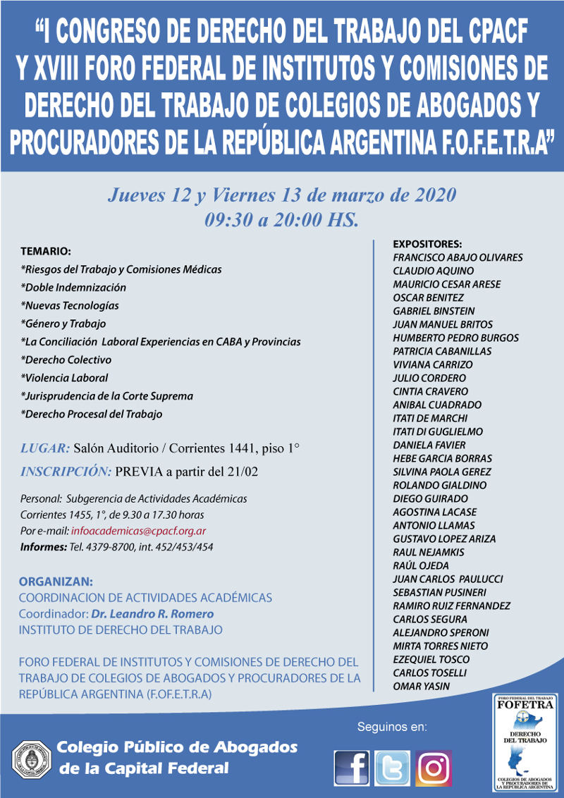 La Secretaría de Ciencia y Técnica de La Facultad de Derecho de UNCuyo realizará entre los días 13 y 14 de Marzo unas «Jornadas Mendocinas sobre Propiedad Horizontal Común y Especial». El Colegio otorgará 4 medias becas que se sortearán entre los inscriptos antes del día 11. Beneficio exclusivo para asociados al Colegio con cuota al día.