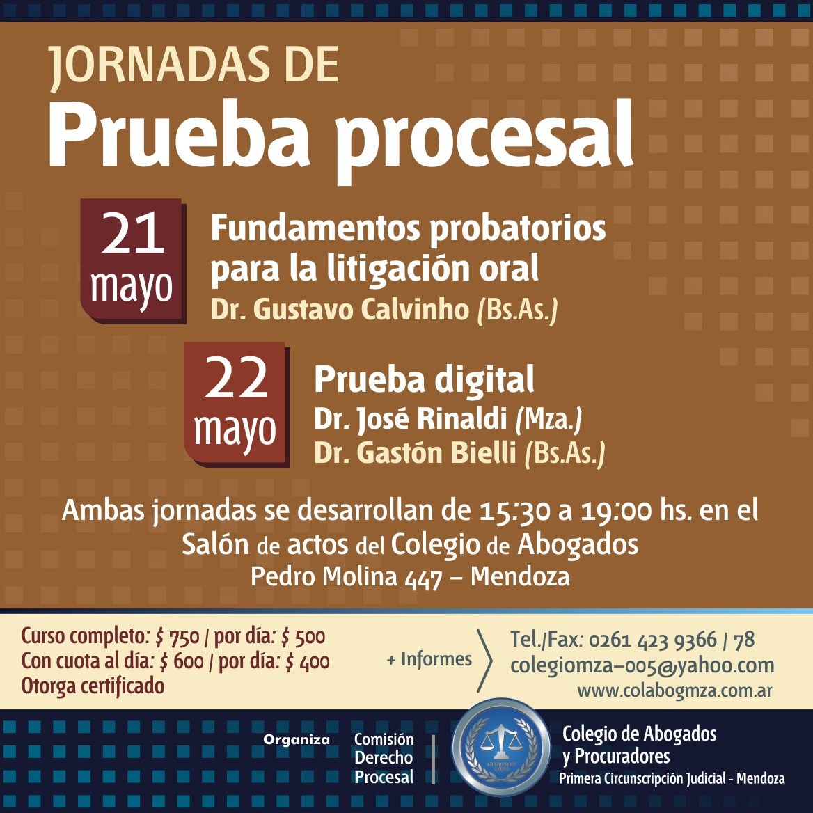 Será el 21 y 22 de mayo desde las 15.30 en el Auditorio del Colegio de Abogados y Procuradores. Se trabajarán los Fundamentos Probatorios para la litigación oral y Prueba Digital.