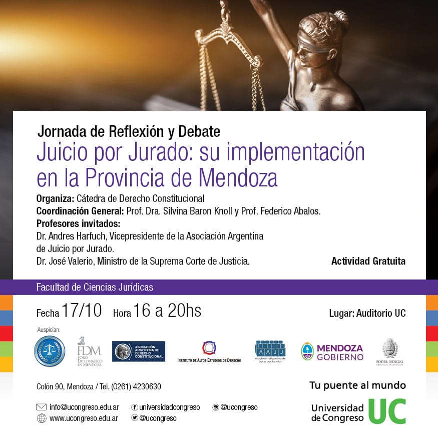 Se realizará el 31 de octubre y el 1 de noviembre desde las 11 en el Salón de Actos de la Suprema Corte de Justicia de Mendoza.