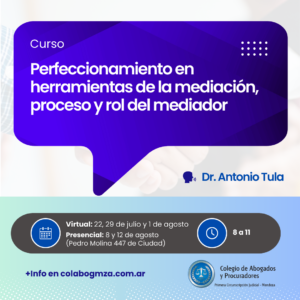 Será un curso con encuentros virtuales y presenciales que desarrollará herramientas de la mediación, proceso y rol del mediador. Estará a cargo de Antonio Tula