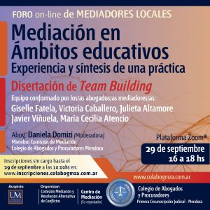 Será en el quinto encuentro del Foro de Mediadores Locales del Colegio de Abogados que se llevará adelante a través de Zoom el jueves 29
