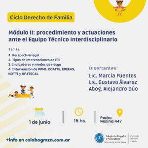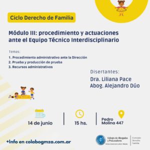 Se trata de una capacitación que ofrece el Colegio de Abogados de Mendoza. En este módulo disertaron Liliana Pace y Alejandro Dúo. El cuarto y