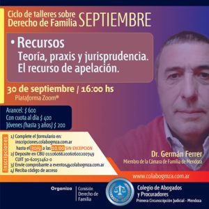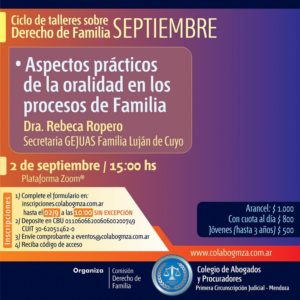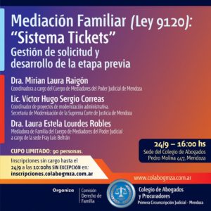 Se trata de un encuentro que se centrará en la gestión de solicitud y desarrollo de la etapa de mediación familiar. Será el viernes 24