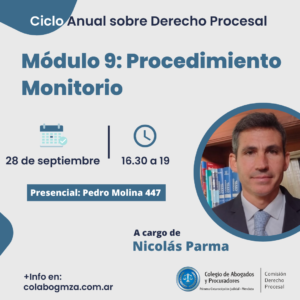 Fue un nuevo encuentro del Ciclo Anual sobre Derecho Procesal del Colegio de Abogados y Procuradores. Nicolás Parma desarrolló el tema “Procedimiento Monitorio” durante el