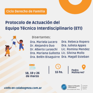 Serán tres jornadas sobre Derecho de Familia el 18, 19 y 26 de marzo, desde las 15, en el Auditorio del Colegio. Las inscripciones ya