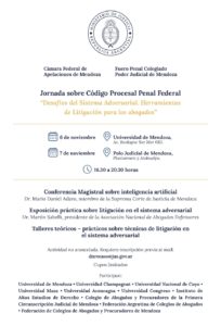 Tendrán lugar el 6 de noviembre en la Universidad de Mendoza, y el 7 de noviembre en el Polo Judicial de Mendoza, de 16.30 a