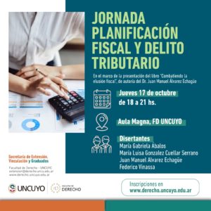 Será el 17 de octubre, de 18 a 21, en el aula Magna de la Facultad de Derecho de la UNCuyo. Se desarrollará en el