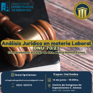 Será el viernes 2 de agosto, a partir de las 14 hs., en la sede del Colegio de Abogados de Mendoza. Las inscripciones están abiertas