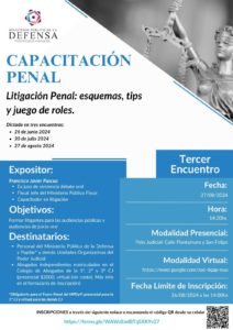 Invitan al tercer encuentro de capacitación en Litigación Penal