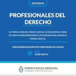 Se solicita a los profesionales del Derecho utilizar un enlace alternativo para ingresar escritos y procurar causas: lp.pjm.gob.ar El Poder Judicial comunicó que el Portal