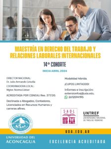 Es una formación de posgrado que dicta la Universidad del Aconcagua. Matriculados del Colegio de Abogados y Procuradores de Mendoza, con la cuota al día,