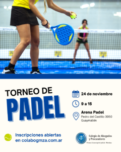 Es una iniciativa del Colegio de Abogados que tendrá lugar el domingo 24 de noviembre, desde las 9, en Arena Padel, ubicado en Pedro del