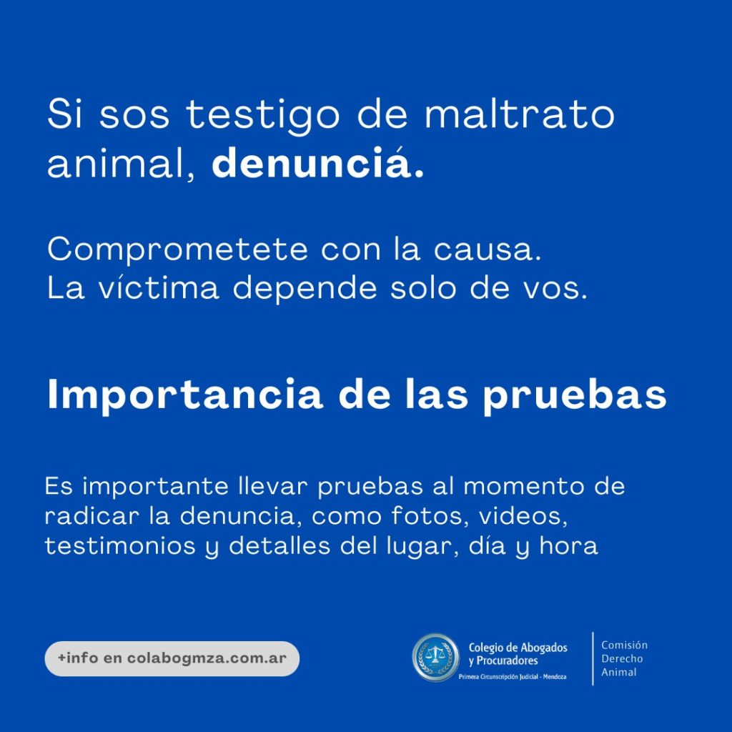 La campaña fue una propuesta de la comisión de Derecho Animal del Colegio, y hace un llamado a la sociedad para que, si son testigos de maltrato animal, denuncien y se comprometan con la causa, recordando que la víctima depende únicamente de la acción de cada individuo.
