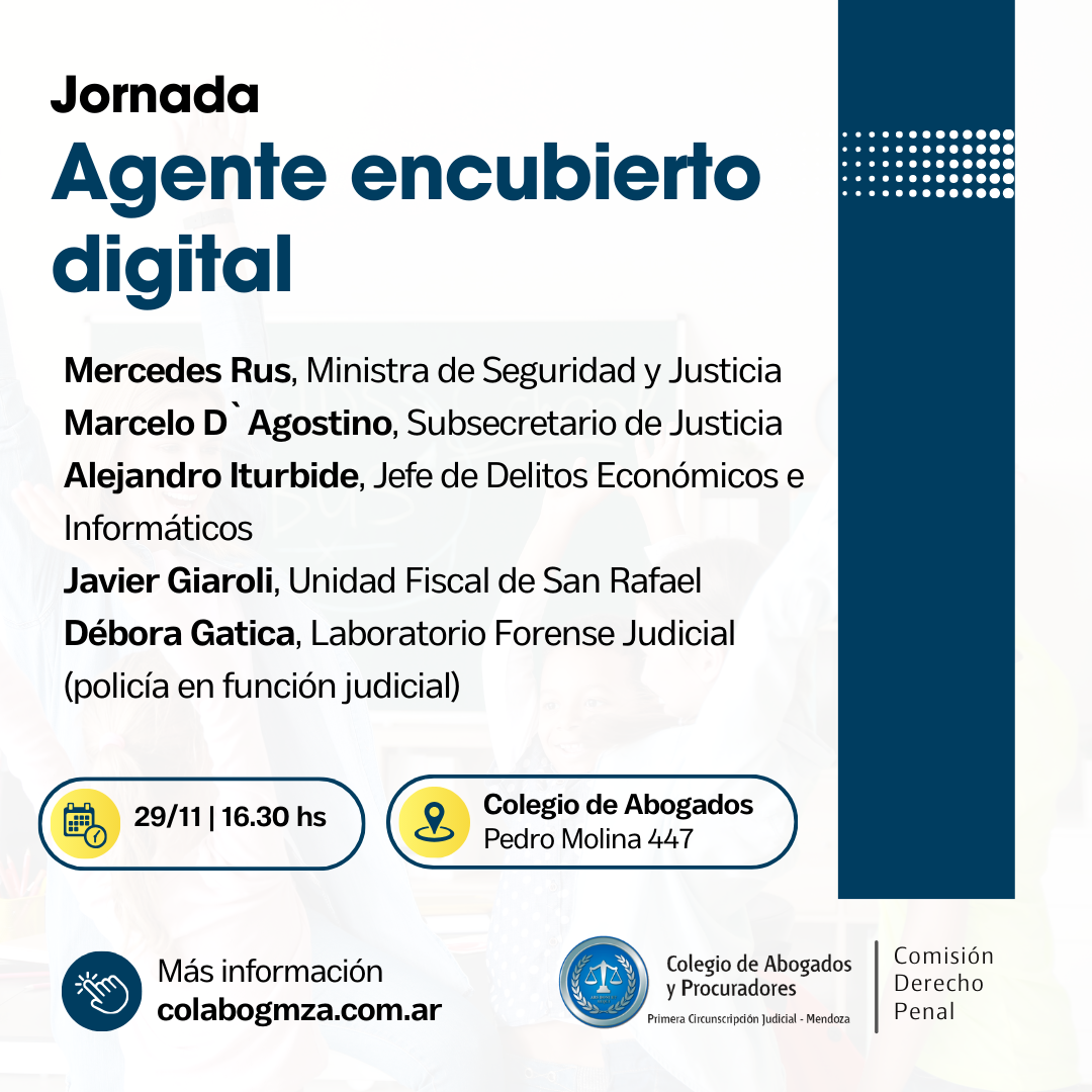 Será el miércoles 27 de noviembre, a partir de las 16, en la sede del Colegio de Abogados y Procuradores de Mendoza. Estará a cargo de los abogados Mauricio Grinspan y Mariel Bolatti. Inscripciones abiertas mediante un formulario online disponible en esta nota.