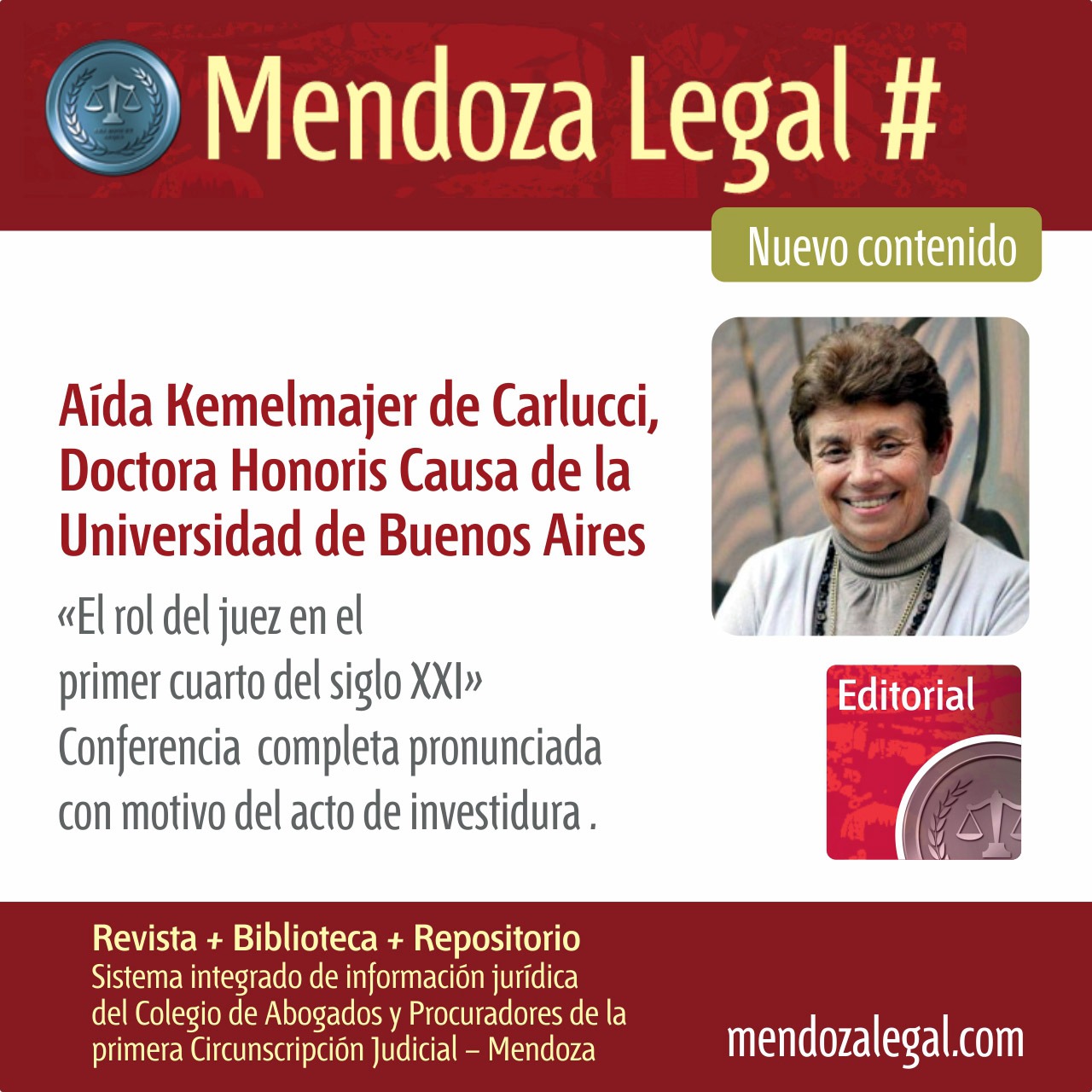 La charla está disponible de manera gratuita para descargar en el sitio web de Mendoza Legal (https://mendozalegal.com/2023/12/15/aida-kemelmajer-de-carlucci-doctora-honoris-causa-de-la-universidad-de-buenos-aires/), el sistema integrado de información jurídica del Colegio de Abogados y Procuradores de la Primera Circunscripción Judicial de Mendoza.
