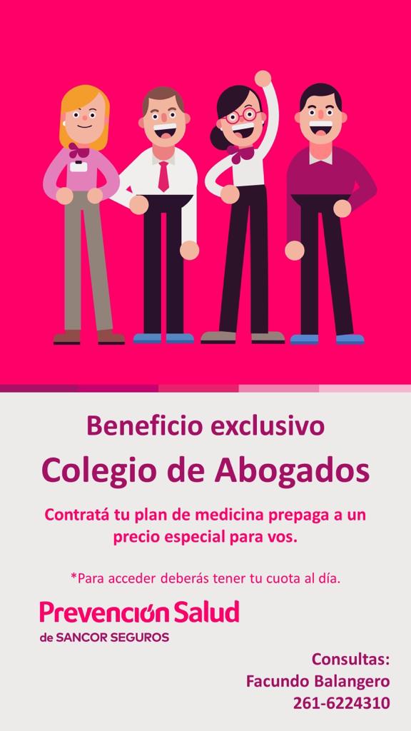 La presidenta del Colegio de Abogados y Procuradores de la Primera Circunscripción Judicial de Mendoza, Andrea Maturana, firmó un convenio con Prevención Salud, representada por Facundo José Balangero. A través acuerdo los matriculados del Colegio con la cuota al día obtendrán descuentos sus diferentes planes de cobertura en medicina prepaga.