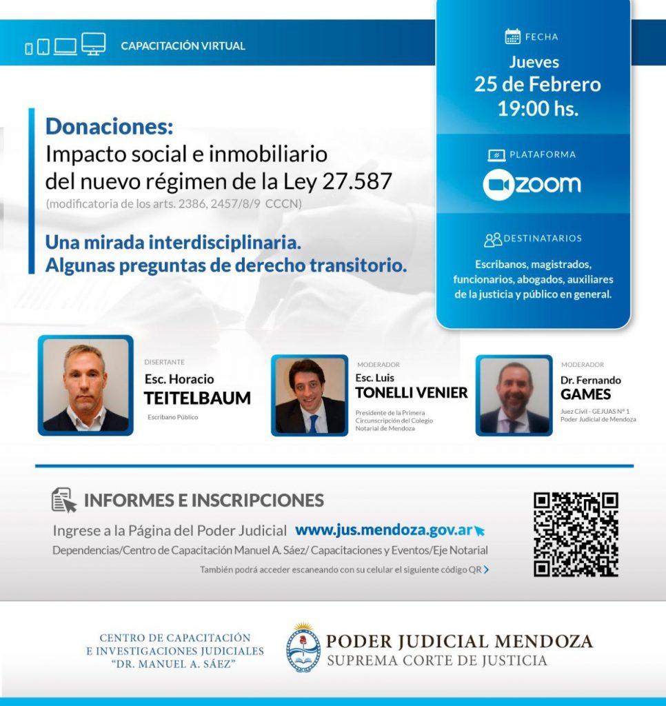 Se trata de una propuesta del Poder Judicial de Mendoza prevista para el jueves 24 de junio a las 16 por Zoom.