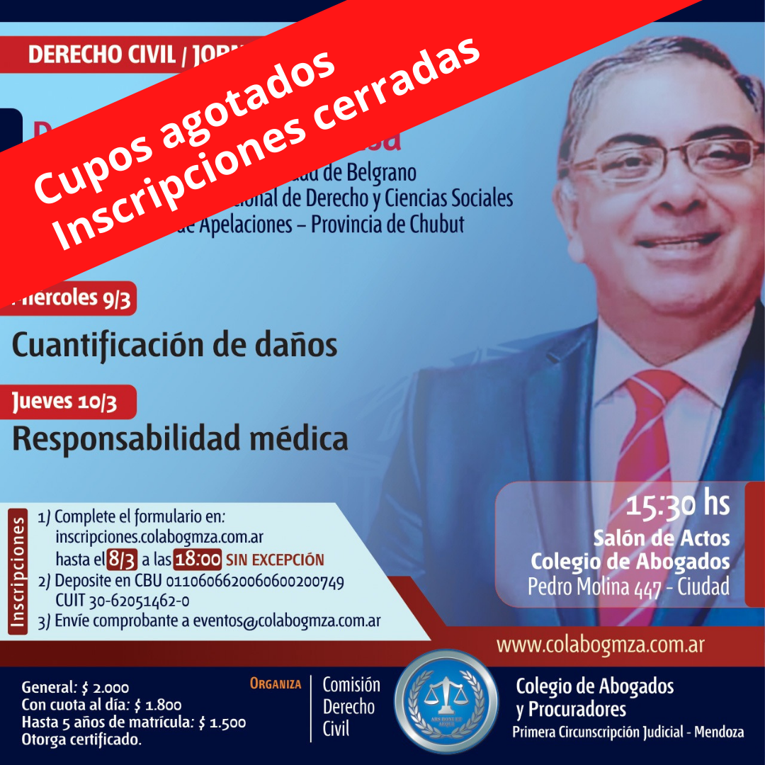 Tendrá lugar el miércoles 4 de septiembre, desde las 15, en la sede del Colegio de Abogados ubicada en Pedro Molina 447 de Ciudad. Las inscripciones están abiertas a través de un enlace disponible debajo en la nota.
