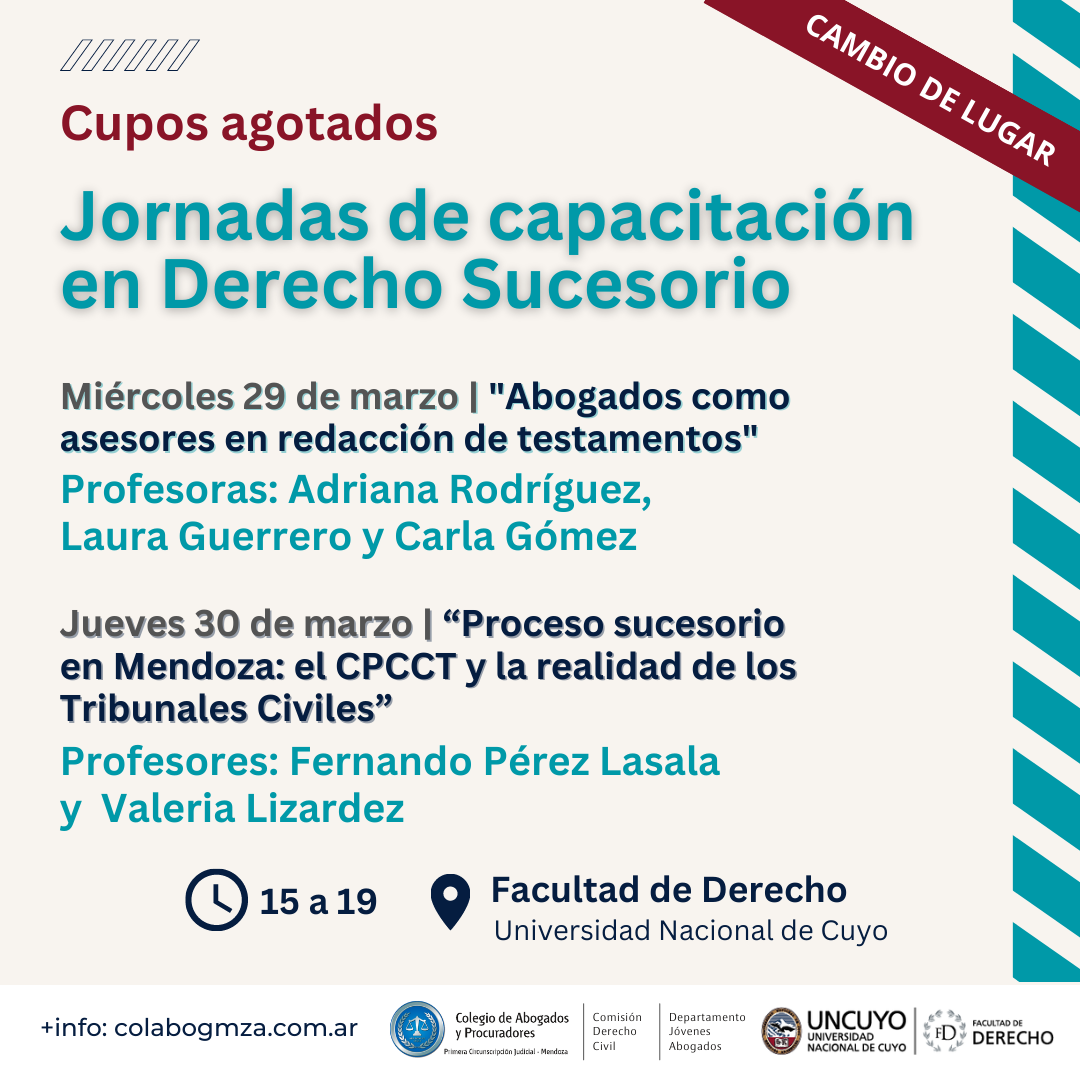 Es una actividad organizada por las Comisiones de Derecho Civil y Derecho Procesal del Colegio, junto a la cátedra de Derecho de Sucesiones de la Facultad de Derecho de la UNCuyo y la Asociación de Magistrados.