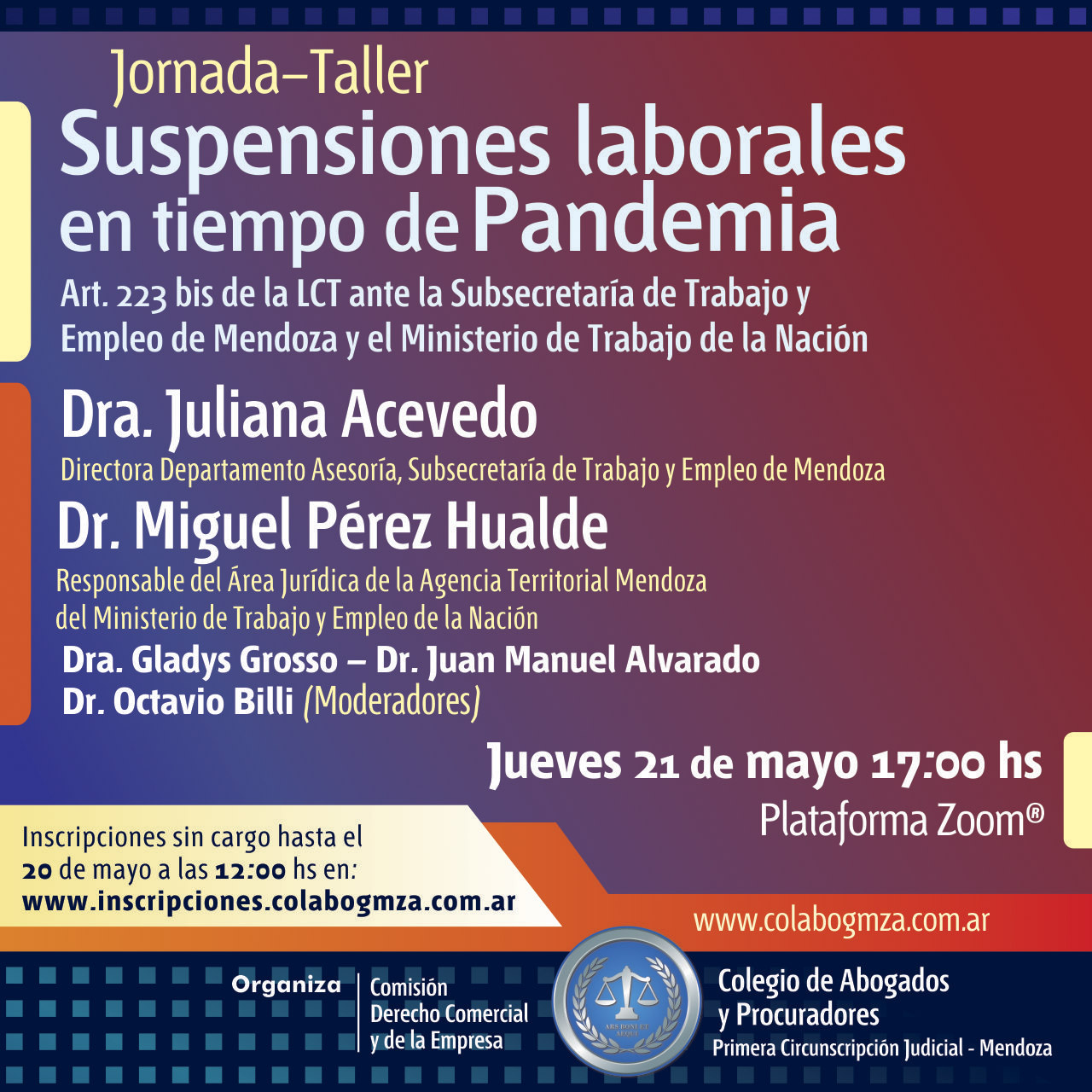 Abordarán el tema desde diferentes perspectivas el miércoles 17 de noviembre desde las 17.30 en la sede del Colegio de Abogados y Procuradores, en Pedro Molina 447 de la Ciudad de Mendoza. Tendrá cupos limitados y ya es posible anotarse on line en: inscripciones.colabogmza.com.ar