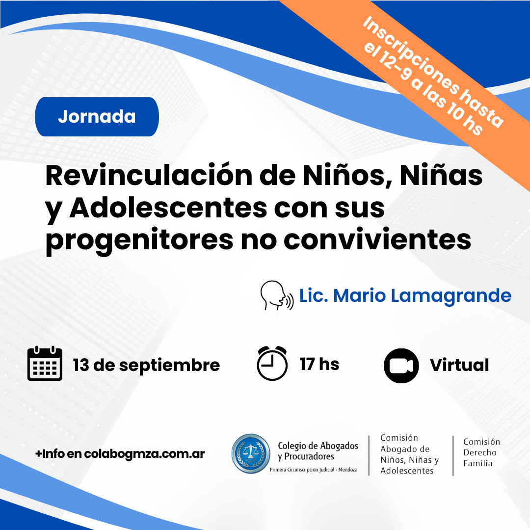 Una capacitación virtual desarrollará la “Revinculación de Niños, Niñas y Adolescentes con sus progenitores no convivientes”. Será el viernes 13 de septiembre, desde las 17 hs, y estará a cargo del psicólogo Mario Lamagrande. Es una actividad apta para todo público.