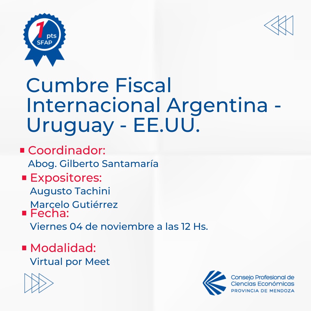 Será el viernes 4 de noviembre, a partir de las 12, de manera virtual a través de Google Meet. El encuentro será gratuito y las inscripciones están abiertas en: https://bit.ly/cumbre-fiscal-internacional.