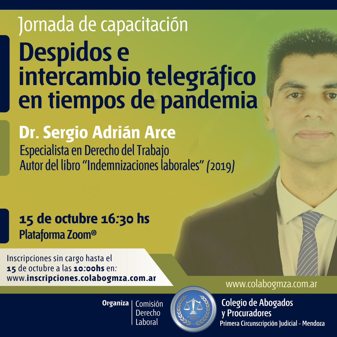 Tendrá lugar el jueves 15 de octubre a las 16.30 en el Zoom del Colegio. Expondrá el especialista en Derecho del Trabajo, Sergio Adrián Arce. Inscripciones hasta el mismo día a las 12 en: inscripciones.colabogmza.com.ar