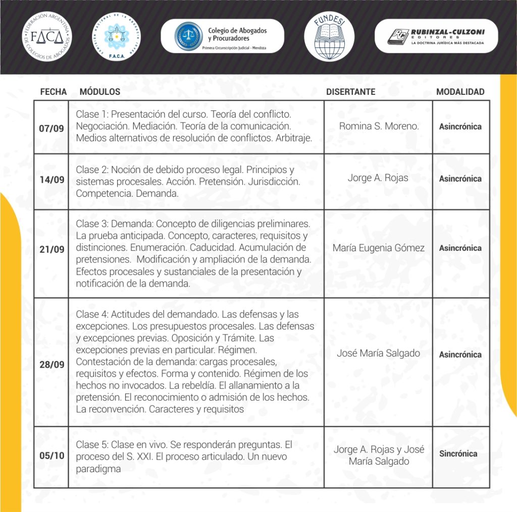 Se trata de una formación básica en mediación, con modalidad presencial y una duración de seis meses, que comenzará a dictarse en marzo en la Facultad de Psicología de la Universidad del Aconcagua. Matriculados del Colegio de Abogados que tengan la cuota al día obtendrán un 15% de descuento.