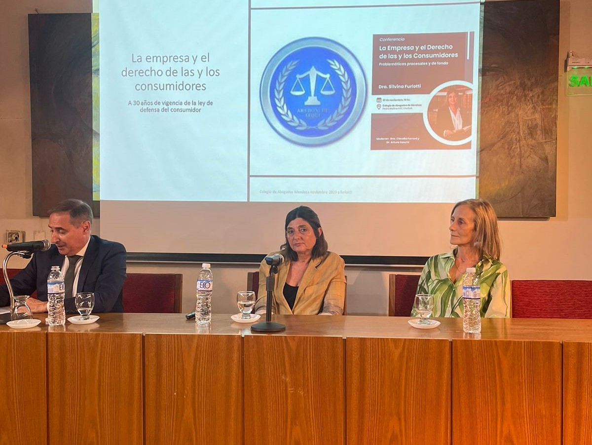 Abogados y procuradores participaron de la charla «La Empresa y el Derecho de las y los Consumidores. Problemáticas procesales y de fondo” que tuvo como protagonista a la Dra. Silvina Furlotti, jueza de la Segunda Cámara de Apelaciones en lo Civil, Comercial, Minas, de Paz y Tributario de la Primera Circunscripción Judicial de Mendoza.