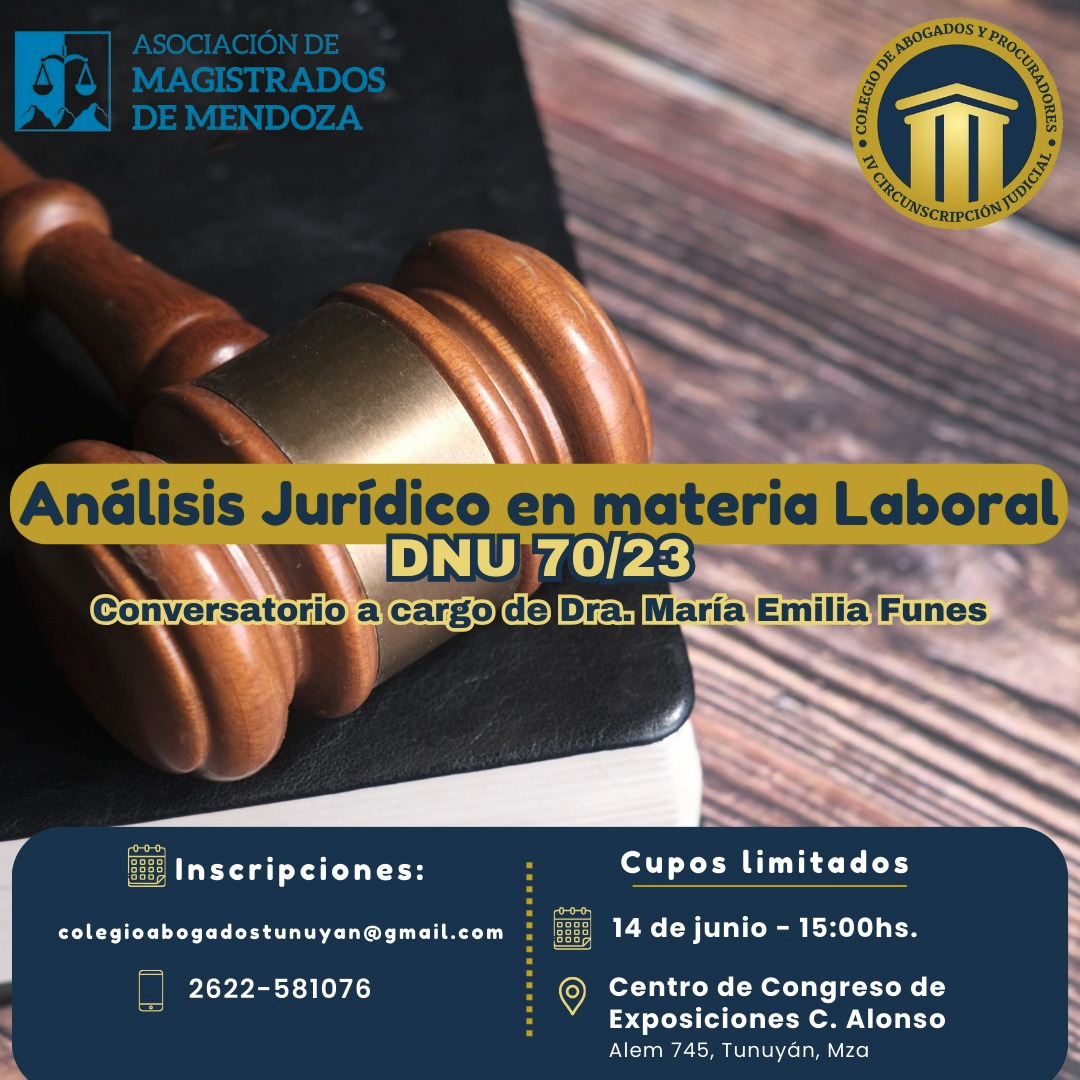 El Colegio de Abogados y Procuradores de la 4ta Circunscripción Judicial realizará un conversatorio que abordará las implicaciones prácticas de las recientes normativas y cómo afectan el ámbito laboral. Estará a cargo de la Dra. María Emilia Funes y tendrá lugar el viernes 14 de junio, desde las 15, en el Centro de Congresos y Exposiciones «Carlos Alonso» de Tunuyán.