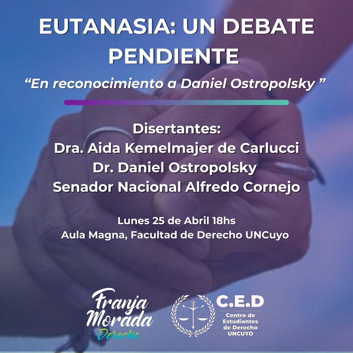 Profesionales del Derecho, reconocidos juristas, psicólogos, médicos, estudiantes y público interesado participaron del encuentro “Eutanasia: libertad a vivir la muerte. Diferentes visiones”. Tuvo como eje el análisis de los proyectos de ley vigentes en Argentina y el abordaje del tema desde distintas disciplinas, como el Derecho, la Medicina, la Bioética o la Tanatología.