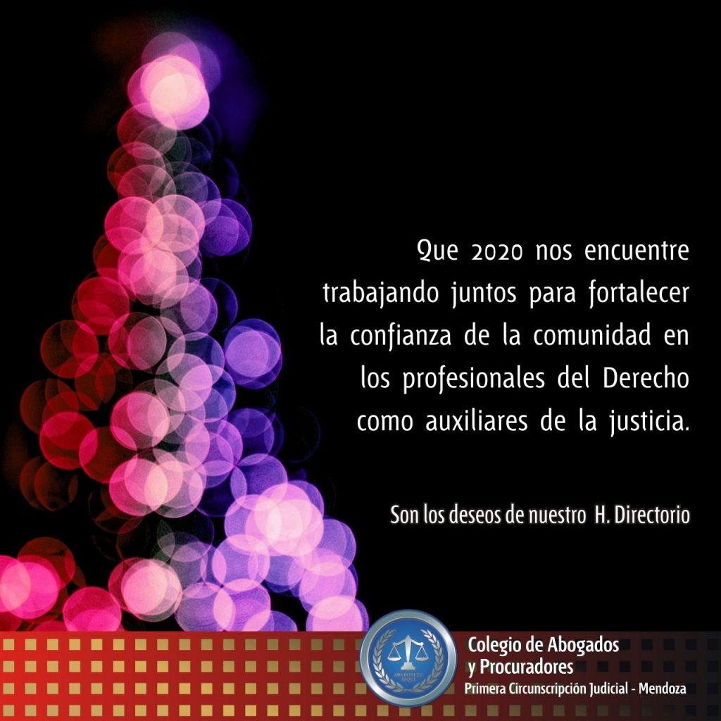 Que el 2020 nos encuentre trabajando juntos para fortalecer la confianza de la comunidad en los profesionales del Derecho como auxiliares de la justicia.