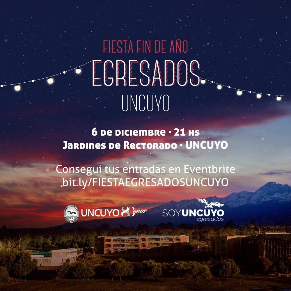La fiesta tendrá lugar el 6 de diciembre a partir de las 21 en los jardines del Rectorado de la UNCUYO. Las entradas pueden adquirirse de forma online a través de la plataforma Eventbrite en el siguiente link. Evento al aire libre. La entrada incluye una consumición, participación en sorteos especiales y cuponera de descuentos.