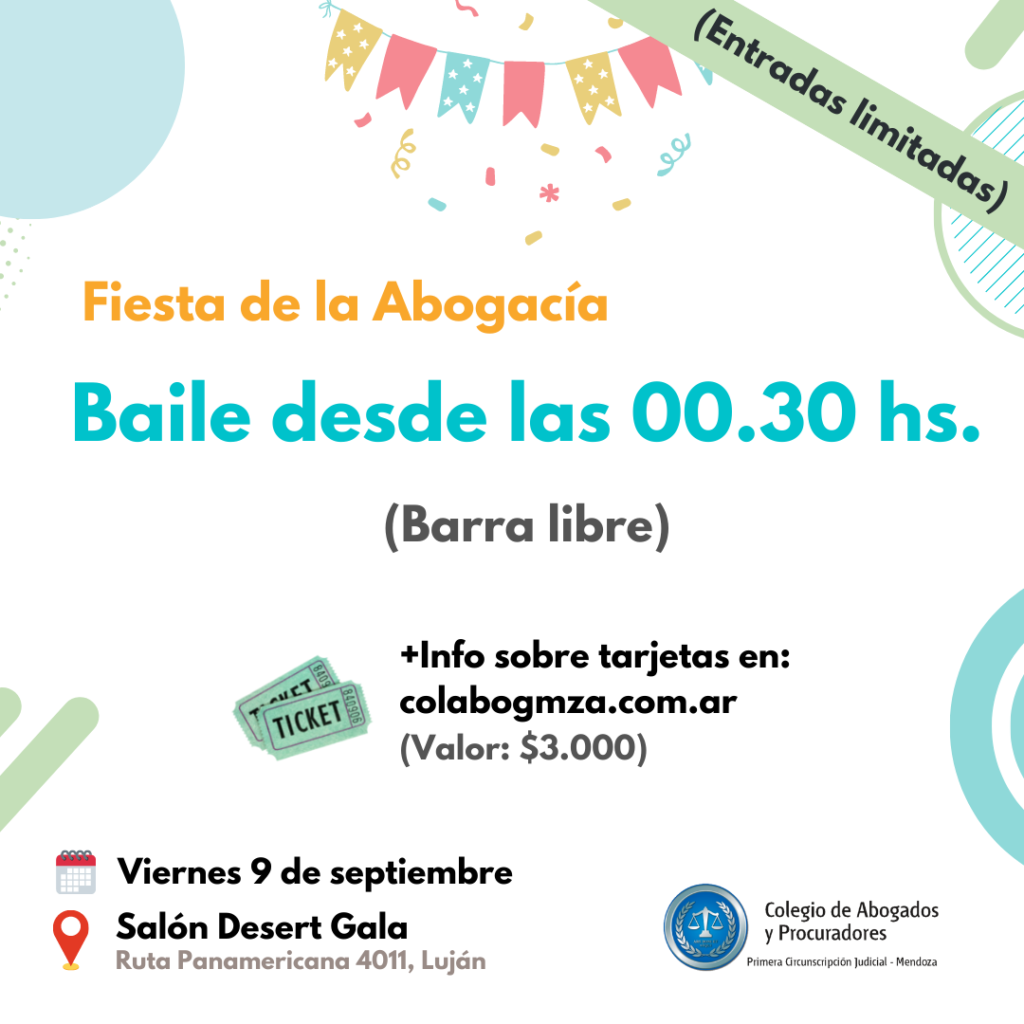 Entre los representantes de organizaciones gubernamentales y de la sociedad civil que acompañaron al Colegio de Abogados y Procuradores en la fiesta se destacaron el presidente de la Suprema Corte de Justicia, Dalmiro Garay Cuelli; la defensora general del Ministerio Público de la Defensa y Pupilar, Cecilia Saint André; el senador provincial, David Saez; el subsecretario de Justicia y Relaciones Institucionales, Marcelo D´Agostino Dillon; el vicepresidente de la Asociación de Magistrados, Juan Pablo Civit; la vicepresidenta del Colegio de Abogados y Procuradores de la 3° Circunscripción, Florencia Victoria Sar Sar; la vicepresidenta del Colegio de Abogados y Procuradores de la 4° Circunscripción, Marina Bustamante; el presidente del Colegio Notarial, Luis Tonelli; el presidente del Consejo Profesional de Ciencias Económicas, Julián Sadosfchi; el director de Personas Jurídicas, Sebastián Guillermo Soneira; miembros del Tribunal de Ética y Disciplina del Colegio de Abogados y Procuradores, encabezados por Sebastián Sosa y Natalia Vallina; y ex presidentes de la institución, como el Eduardo Bargazzi y la Andrea Maturana.