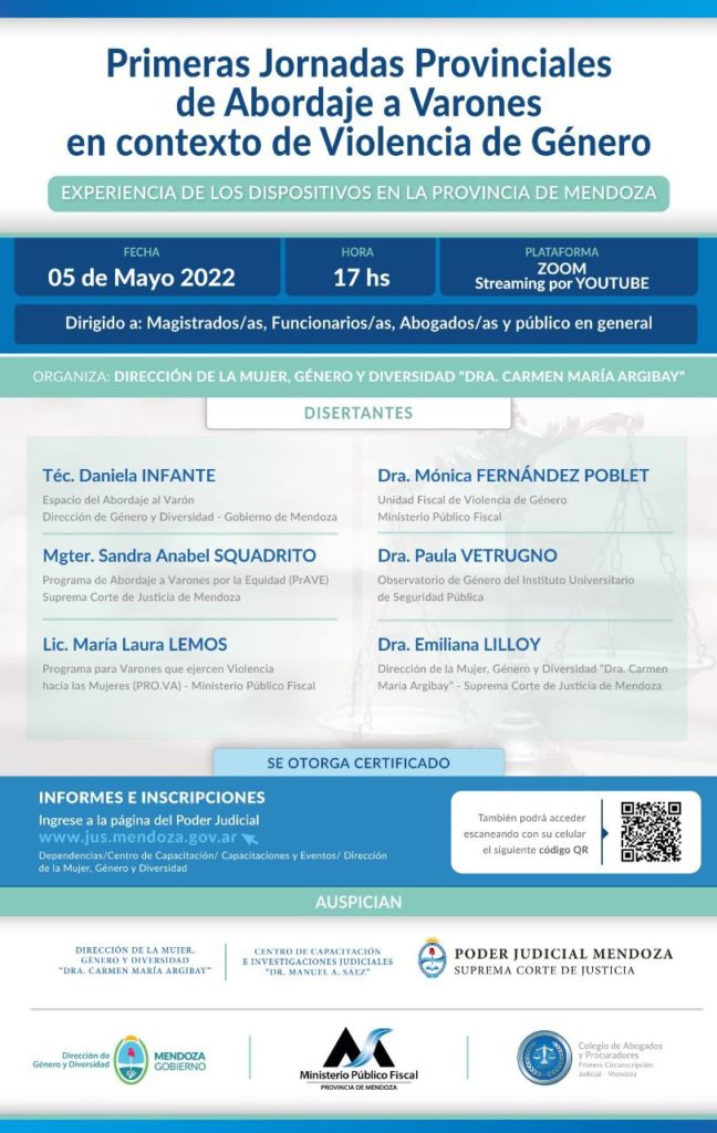 Primeras Jornadas Provinciales de Abordaje a Varones en contexto de Violencia de Género ” es el nombre de una formación destinada a magistrados, funcionarios, abogados y público en general interesado en la temática. Tendrá modalidad virtual y se llevará a cabo el jueves 5 de mayo, a las 17, a través de la plataforma Zoom y se retransmitirá por YouTube.