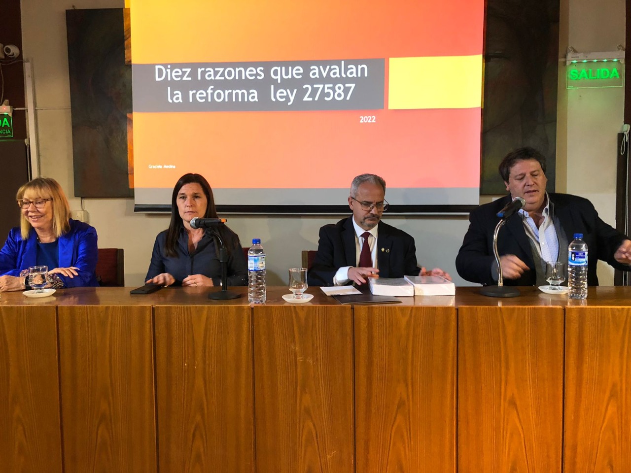 La disertación estuvo a cargo del doctor en Derecho y Ciencias Jurídicas y actual decano de la Facultad de Derecho de la UNCuyo, Fernando Pérez Lasala; y de la doctora en Jurisprudencia, profesora de la Universidad de Buenos Aires y ex Jueza Cámara Civil y Comercial Federal, Graciela Medina.