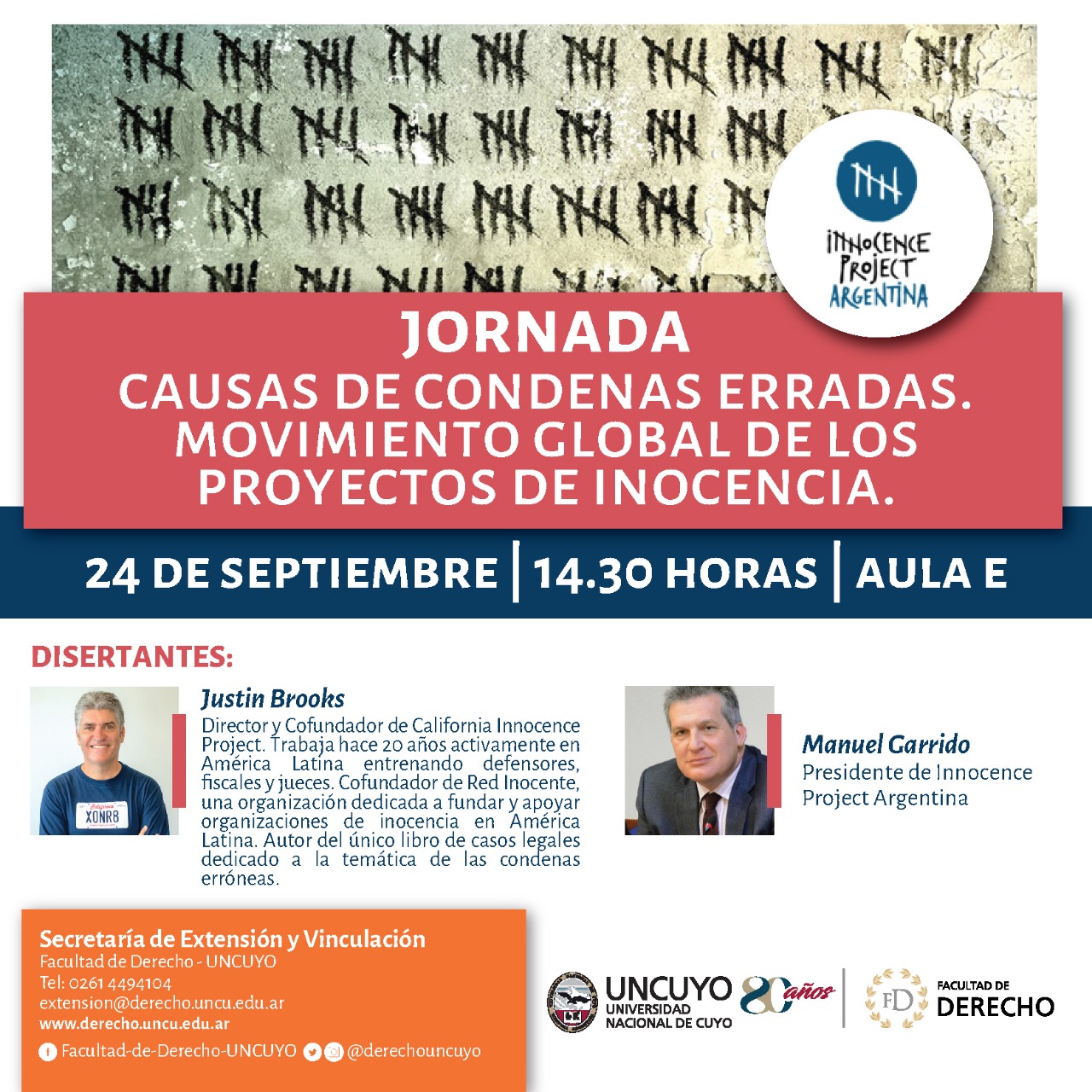 Organizada por Innocence Project Argentina, la actividad se realizará el 24 de septiembre a las 14.30 en el aula E de la Facultad de Derecho de la Universidad Nacional de Cuyo.