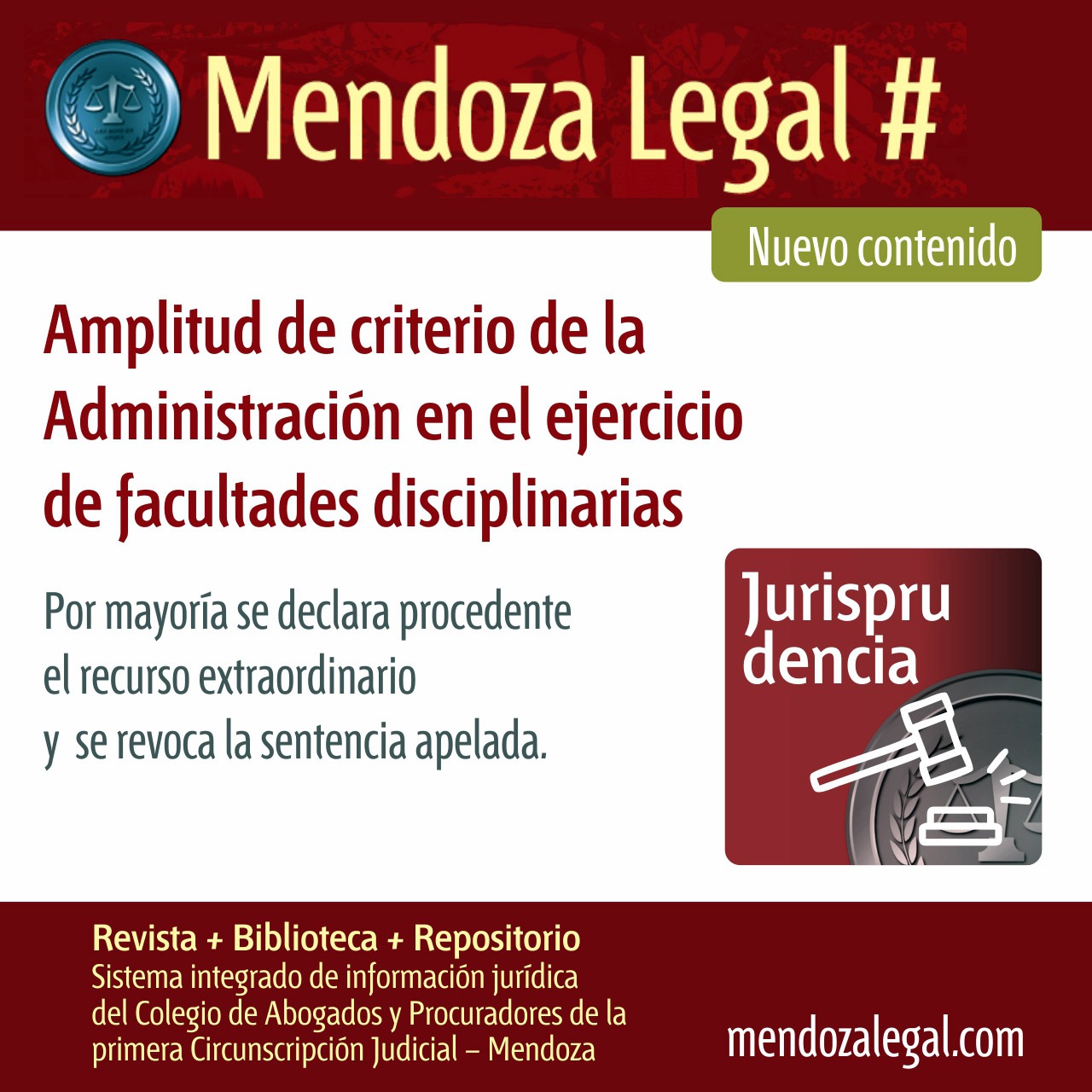 Matriculados en el Colegio de Abogados y Procuradores de la Primera Circunscripción Judicial de Mendoza con cuota al día podrán acceder a un 20% de descuento. Los interesados podrán solicitar más información e inscribirse al correo informes@umaza.edu.ar