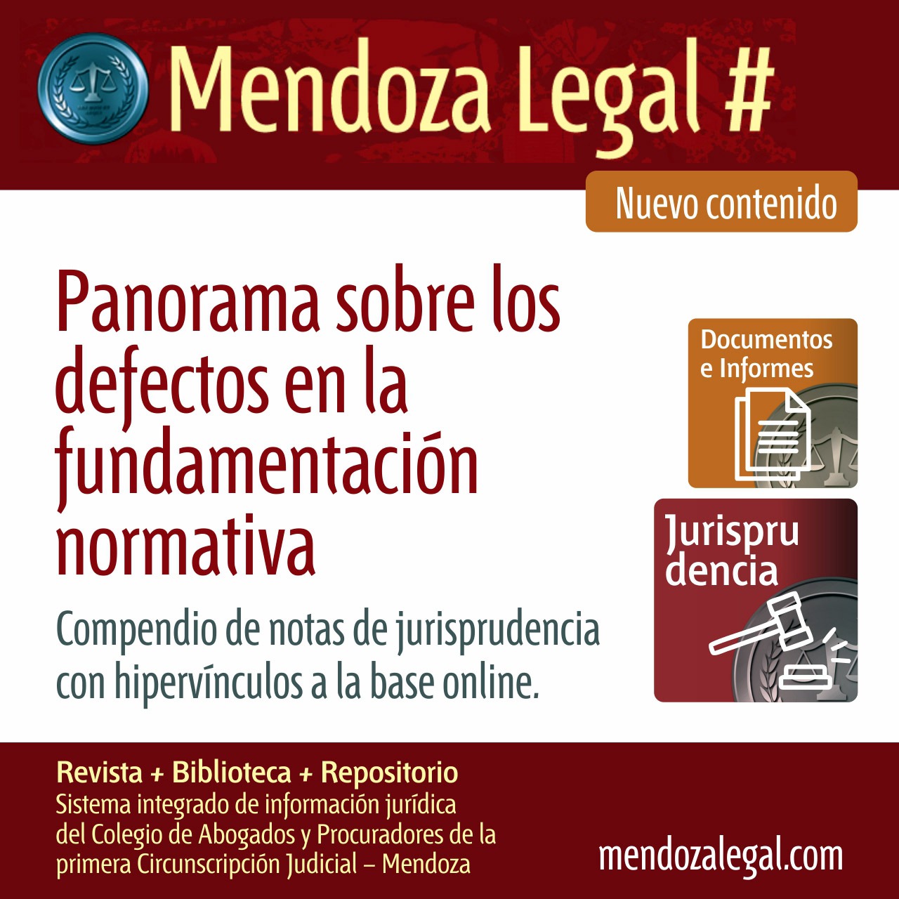 Mendoza Legal es el sistema integrado de información jurídica del Colegio de Abogados y Procuradores de la Primera Circunscripción Judicial de Mendoza. Una de sus últimas publicaciones ofrece una edición de la Secretaría de Jurisprudencia de la Corte Suprema de Justicia de la Nación, con enlaces de fallos online en los que se tratan defectos en la fundamentación normativa.