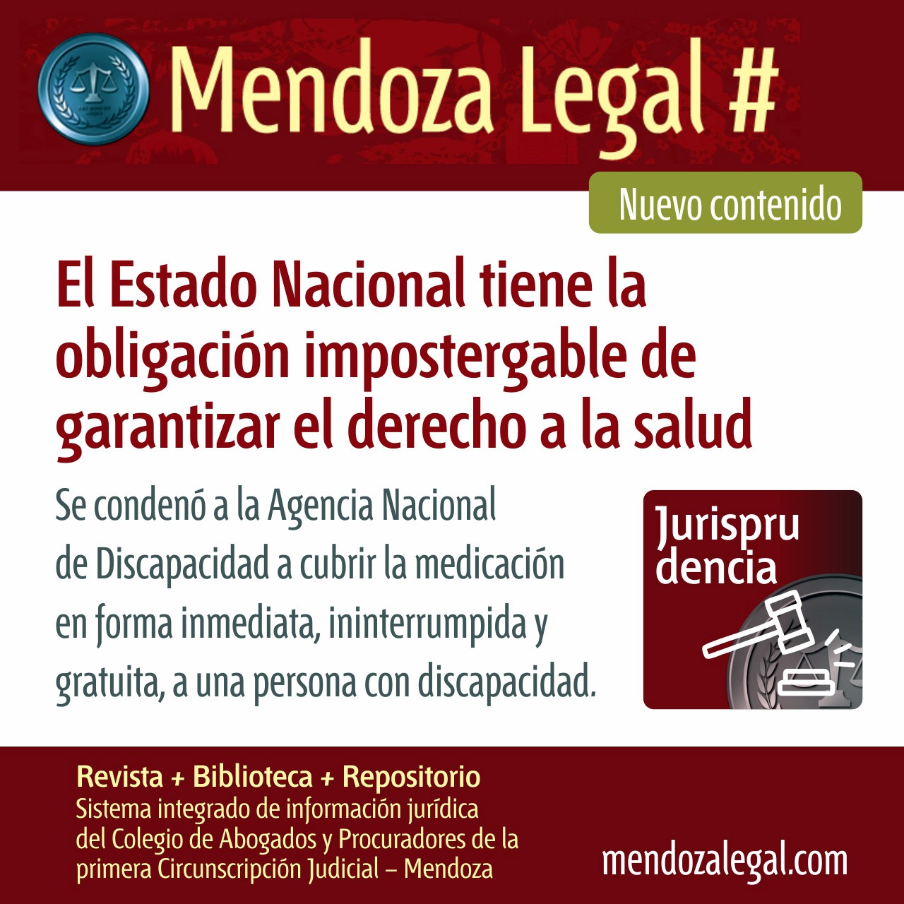 Una de sus últimas publicaciones ofrece un fallo donde la Cámara Nacional de Apelaciones en lo Contencioso Administrativo Federal resolvió rechazar el recurso de apelación interpuesto por el Estado Nacional y confirmó un pronunciamiento de grado, por medio del cual se condenó a la Agencia Nacional de Discapacidad a cubrir la medicación en forma inmediata, ininterrumpida y gratuita, requerida por el actor, una persona con discapacidad.