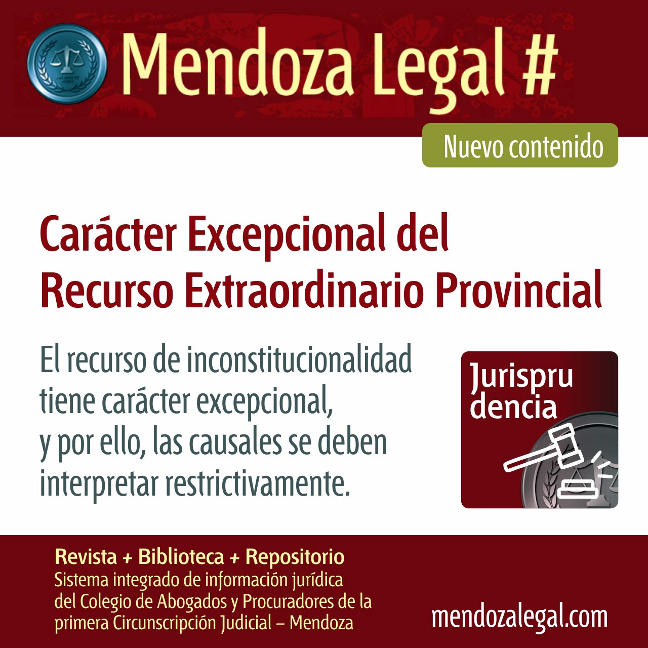 Un fallo disponible en Mendoza Legal aborda el carácter excepcional del Recurso Extraordinario Provincial
