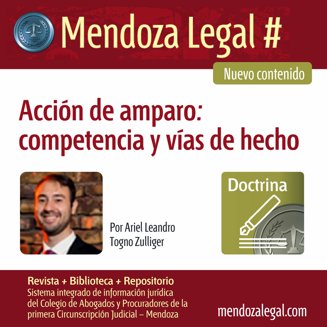Mendoza Legal es el sistema integrado de información jurídica del Colegio de Abogados y Procuradores de la Primera Circunscripción Judicial de Mendoza. Una de sus últimas publicaciones ofrece un artículo sobre acción de amparo, competencia y vías de hecho.